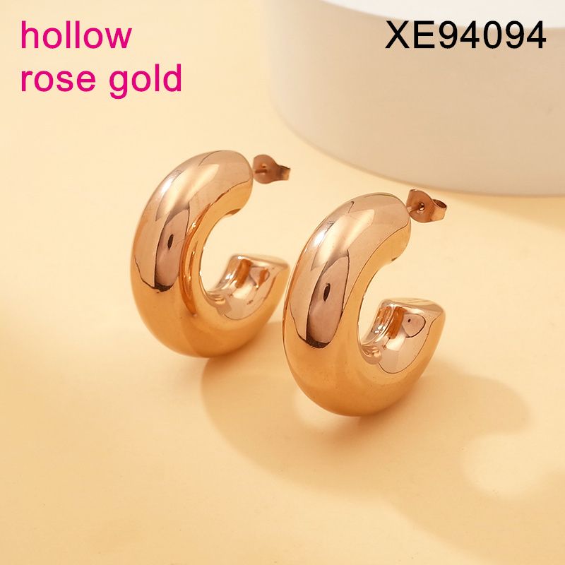 Level B Stainless Steel New Trendy Women Jewelry Rose gold Hollow C-Shape Style Earrings