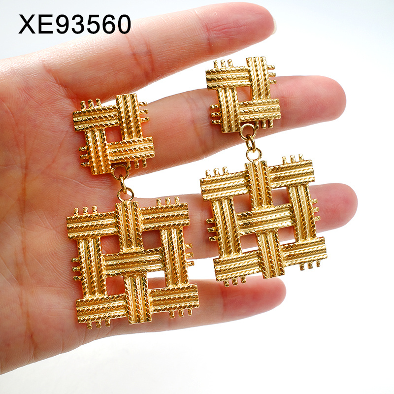 Level B Stainless Steel New Trendy Women Jewelry Golden Geometric Woven Earrings