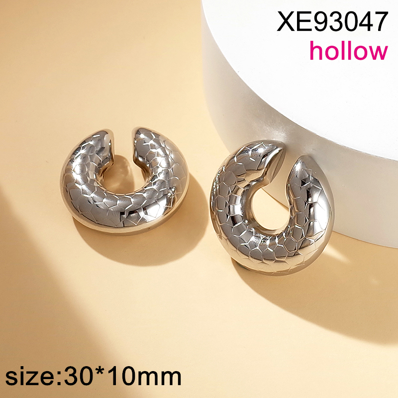 Level B Stainless Steel New Trendy Women Jewelry Polished Hollow ear clip Steel color Texture Without Ear Hole Clip On Earrings