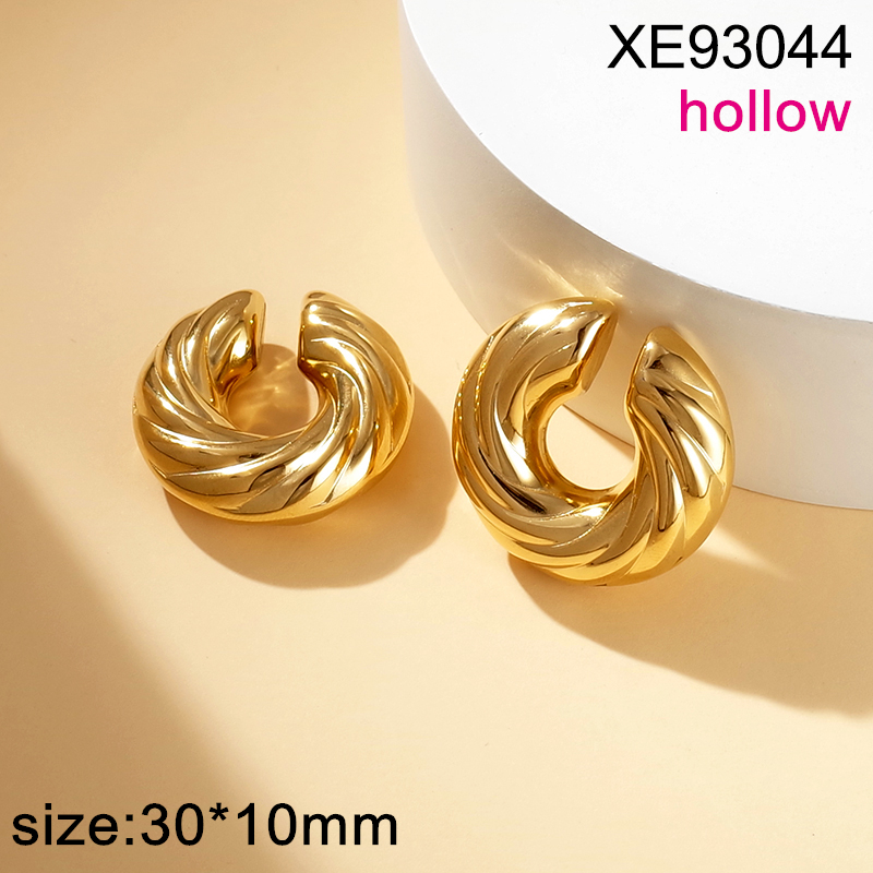 Level B Stainless Steel New Trendy Women Jewelry Thread Polished Hollow ear clip Golden Without Ear Hole Clip On Earrings