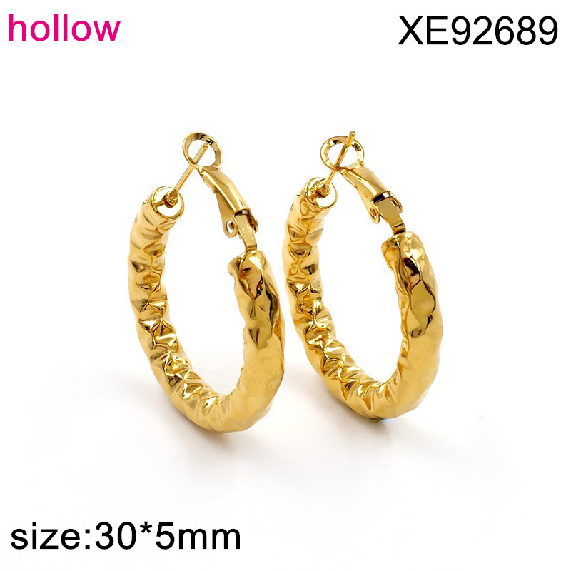 Level B Stainless Steel New Trendy Women Jewelry Hollow Round Golden Earrings