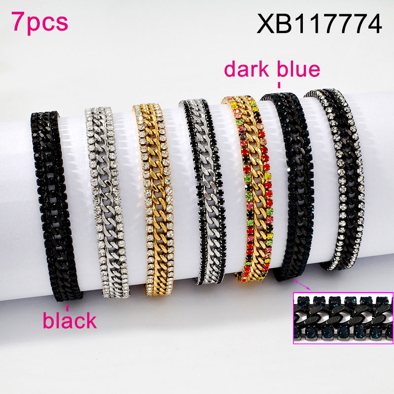 Level B Stainless Steel New Trendy Women Jewelry Mixed color Rhinestone Bracelet