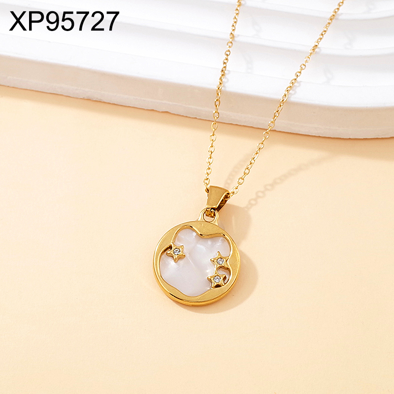 Home > Level B Stainless Steel Jewelry New Trendy Sticky Stone Round Golden Pendant