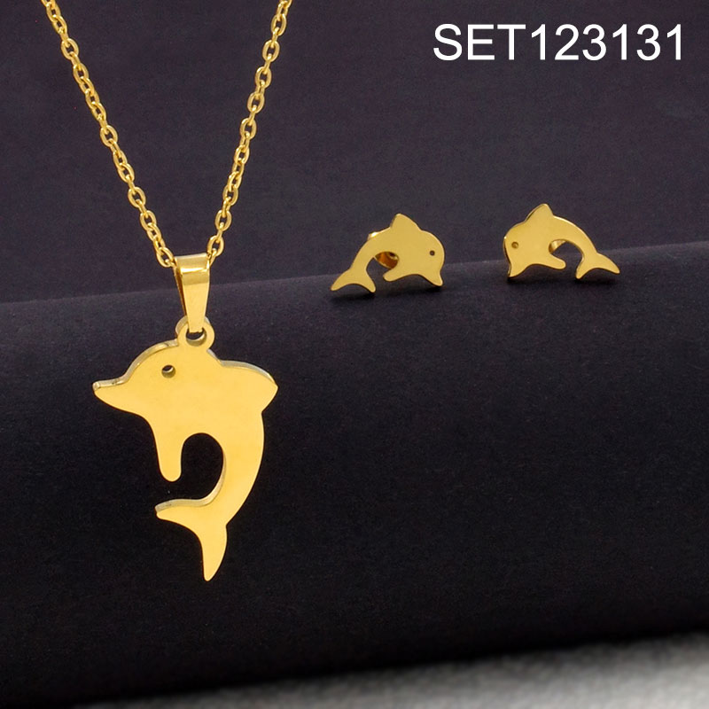 Level B Stainless Steel Jewelry New Trendy Animal Dolphin Golden Cutting SET