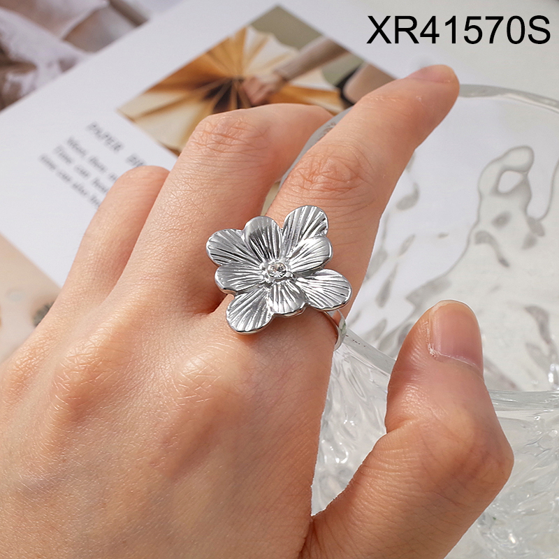Level A Stainless Steel New Trendy Women Jewelry Flower Steel color Open Rings;Ring size can be adjusted freely