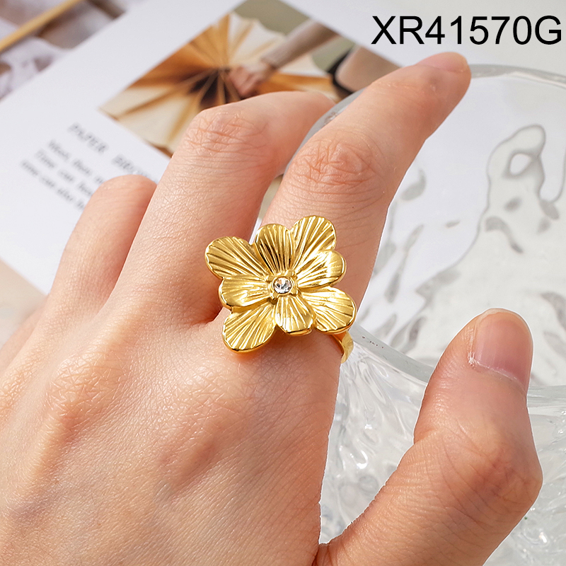 Level A Stainless Steel New Trendy Women Jewelry Flower Golden Open Rings;Ring size can be adjusted freely