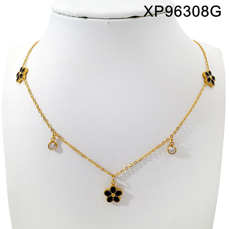 Home > Level A Stainless Steel New Trendy Women Jewelry Drip Oil/Enamel Black Flower Golden Pendant