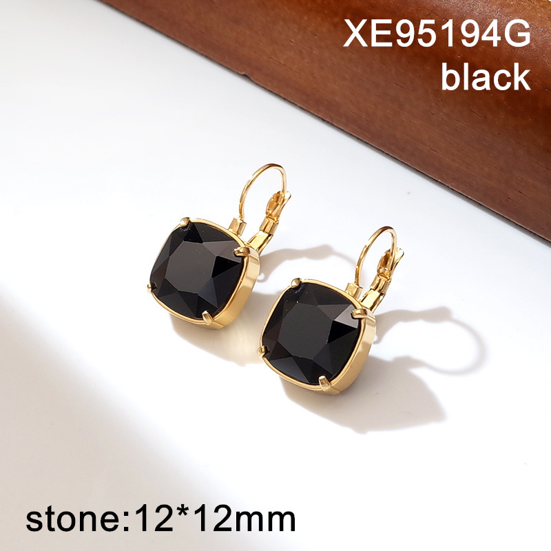 Level A Stainless Steel New Trendy Women Jewelry Black Square Crystal zirconium Golden Earrings