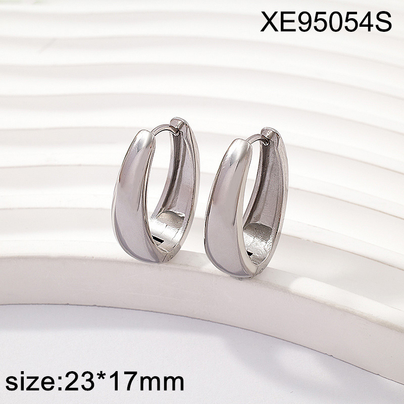 Home > Level A Stainless Steel New Trendy Women Jewelry Steel color Oval Hoop Earrings