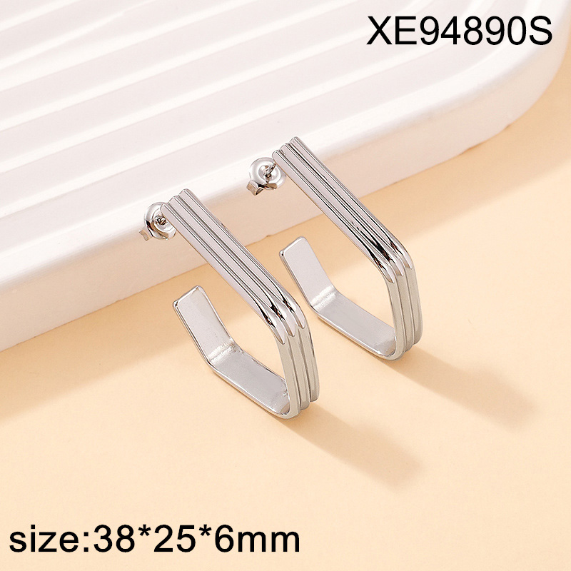 Home > Level A Stainless Steel New Trendy Women Jewelry Steel color Geometric Earrings