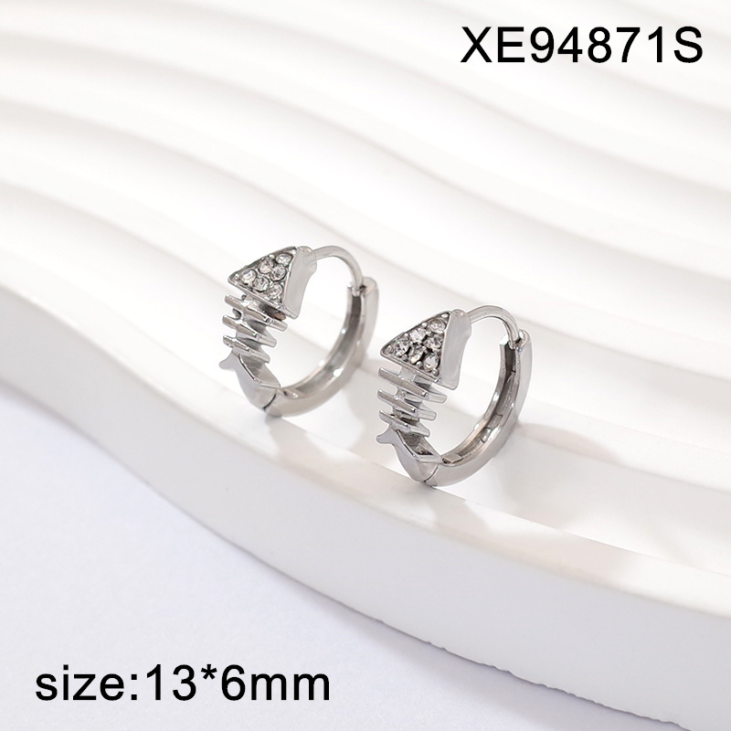 Level A Stainless Steel New Trendy Women Jewelry Summer fruit style Animal Fishbone Steel color Hoop Earrings