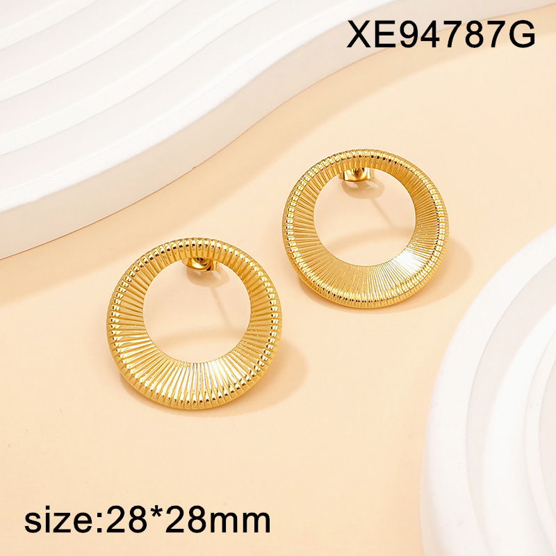 Home > Level A Stainless Steel New Trendy Women Jewelry Round Golden Earrings