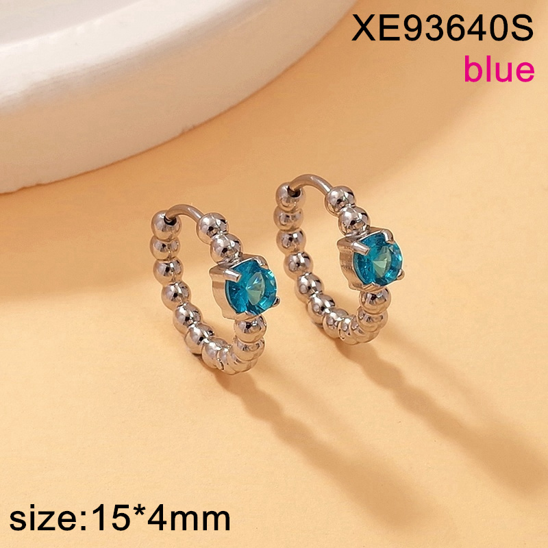 Home > Level A Stainless Steel New Trendy Women Jewelry Round Bead Studded Blue Glass Steel color Earrings