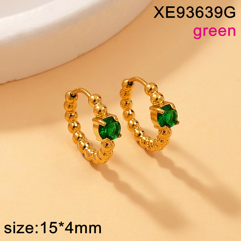 Home > Level A Stainless Steel New Trendy Women Jewelry Round Bead Studded Round Green Glass Golden Earrings