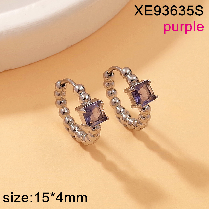 Level A Stainless Steel New Trendy Women Jewelry Round Bead Studded Square Purple Glass Steel color Earrings