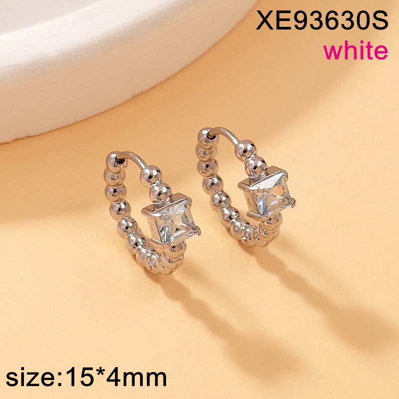 Level A Stainless Steel New Trendy Women Jewelry Round Bead Studded Square White Glass Steel color Earrings