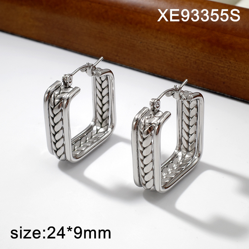 Level A Stainless Steel New Trendy Women Jewelry Square Steel color Hoop Earrings