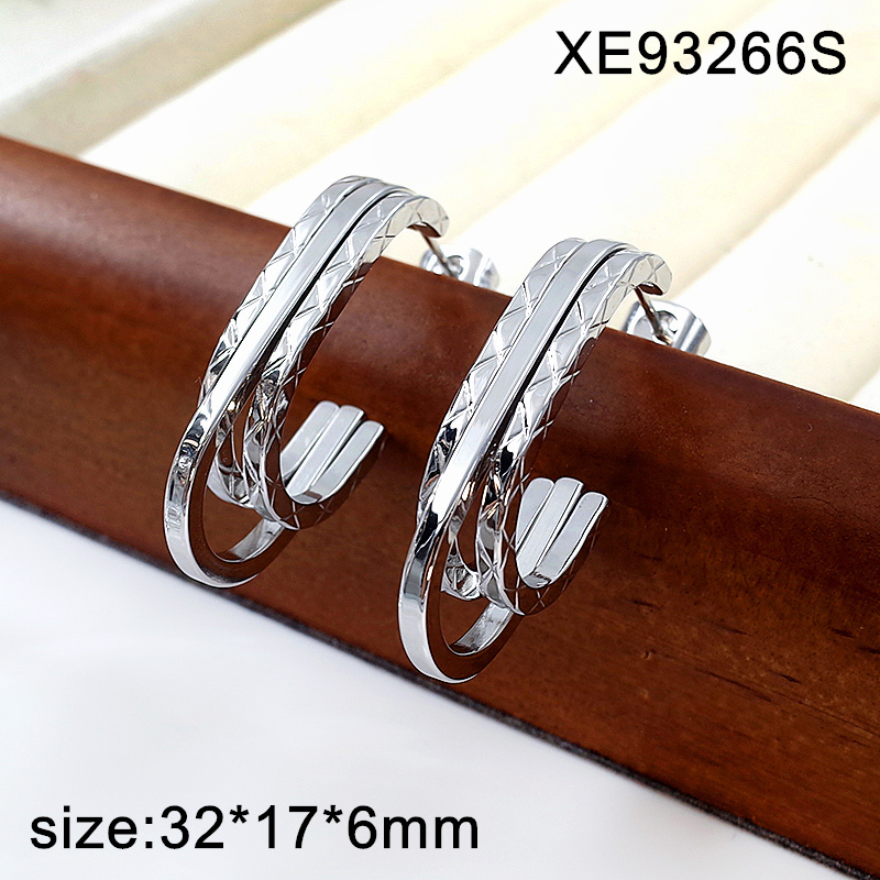 Home > Level A Stainless Steel New Trendy Women Jewelry Steel color Three Layer Lines Irregular Earrings