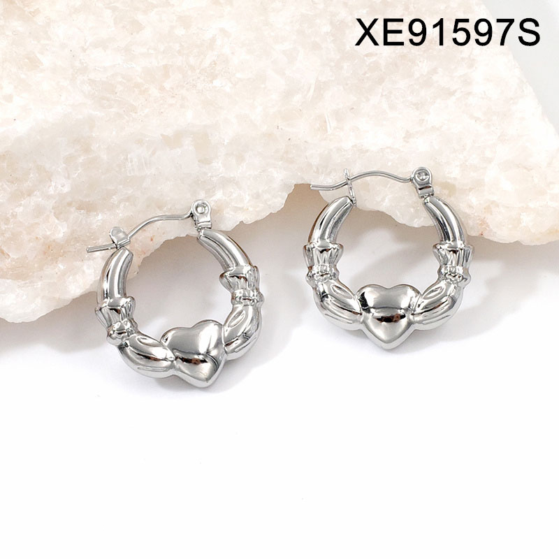 Home > Level A Stainless Steel Jewelry New Trendy Heart Steel color Valentine's Day Hoop Earring