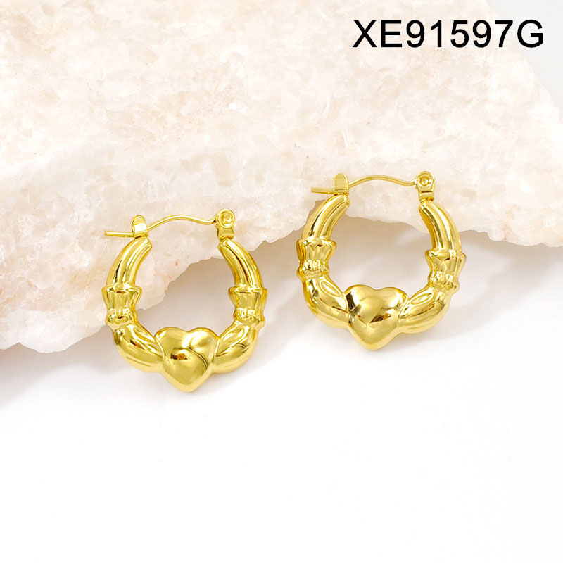 Home > Level A Stainless Steel Jewelry New Trendy Heart Golden Valentine's Day Hoop Earring