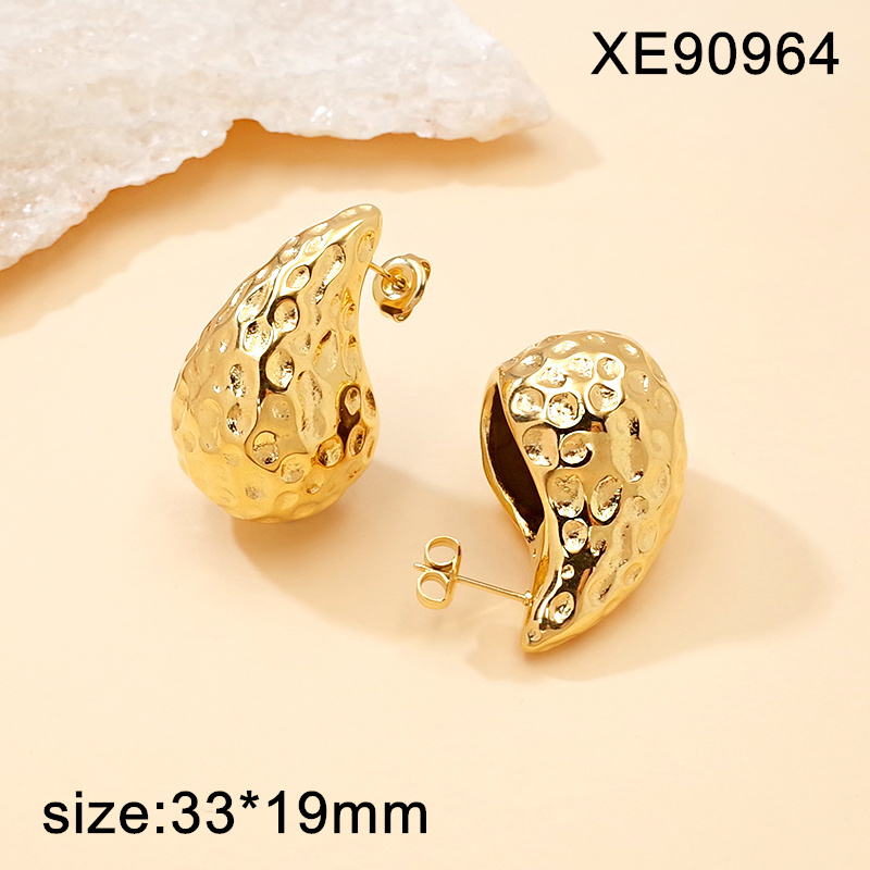Home > Level A Stainless Steel Jewelry New Trendy Water Drip Golden Earrings