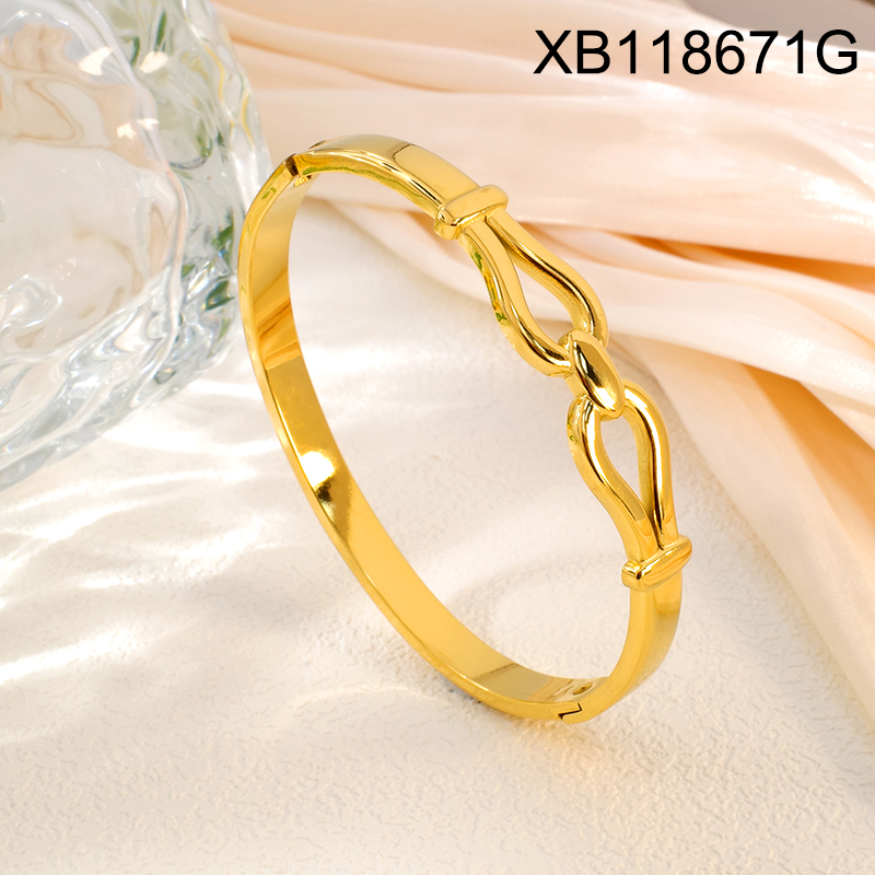 Home > Level A Stainless Steel New Trendy Women Jewelry Horseshoe buckle Golden Smooth Bangle