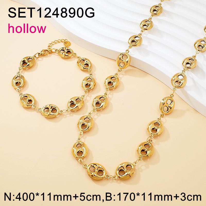 Home > Level A Stainless Steel New Trendy Women Jewelry Pig nose Oval Golden hollow SET