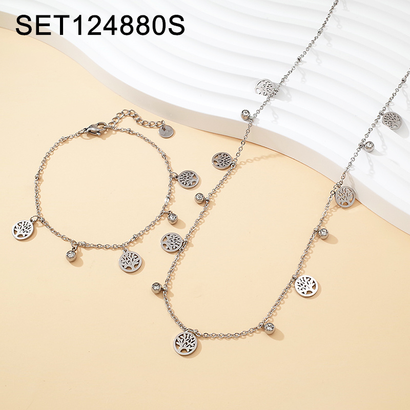 Home > Level A Stainless Steel New Trendy Women Jewelry Tree Steel color SET