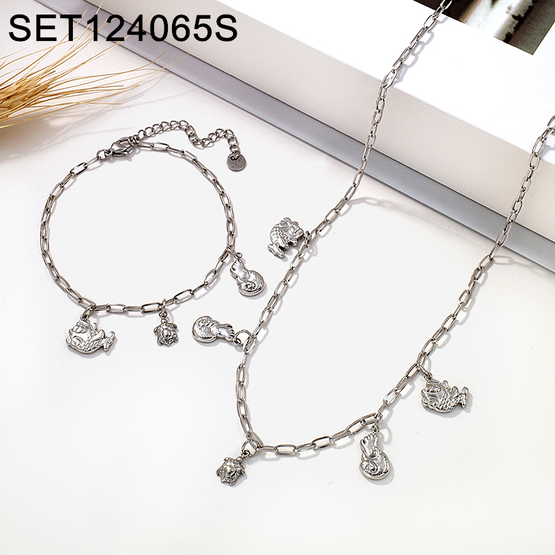 Home > Level A Stainless Steel New Trendy Women Jewelry Summer beach Animal Turtle Shrimp Fish Steel color SET