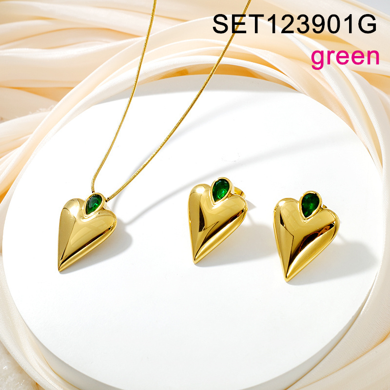Home > Level A Stainless Steel New Trendy Women Jewelry Heart Golden Green CZ Valentine's Day SET