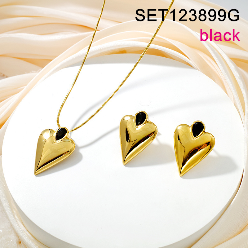Home > Level A Stainless Steel New Trendy Women Jewelry Heart Golden Black CZ Valentine's Day SET