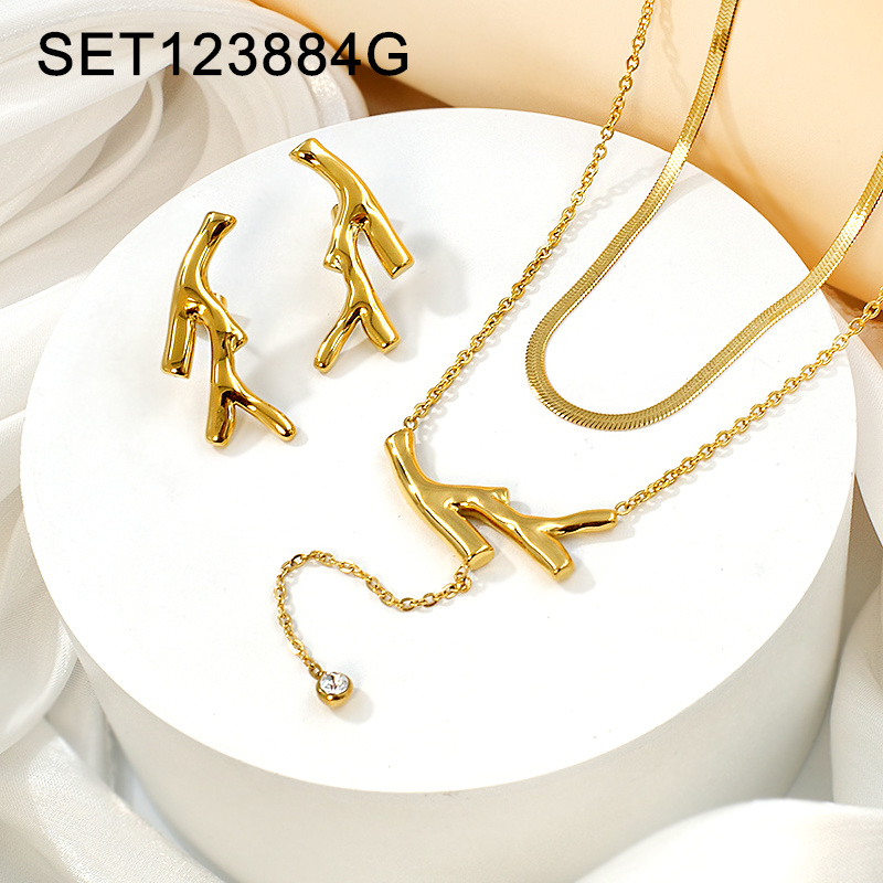 Level A Stainless Steel New Trendy Women Jewelry Two Layers Chain Golden Branch SET