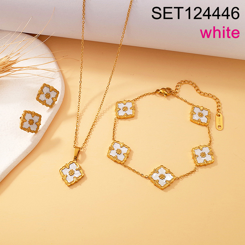 Level B Stainless Steel New Trendy Women Jewelry Single sided White SYC Golden 3pcs SET