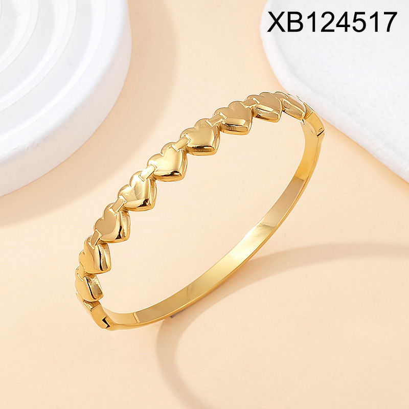 Home > Level B Stainless Steel New Trendy Women Jewelry Heart Golden Valentine's Day Bangle