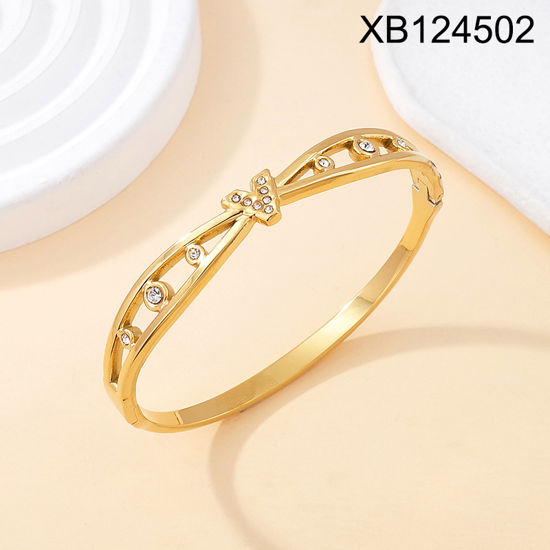 Level B Stainless Steel New Trendy Women Jewelry Letter V Golden Bangle