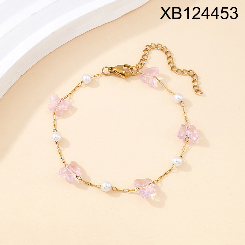 Level B Stainless Steel New Trendy Women Jewelry Pearl Style/Plastic Beads Animal Butterfly Golden Bracelet