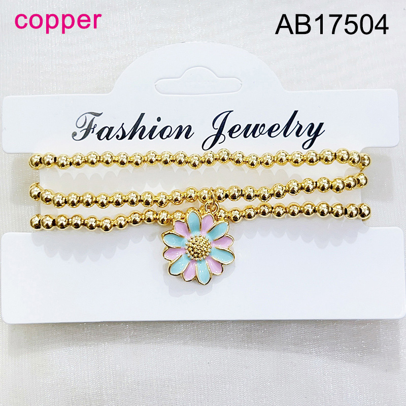 Home > Level B Fashion Jewelry New Trendy Women Jewelry Niche Design Layered Jewelry Round Beads Flower Golden Elastic Bracelet;Material:copper (cobre)