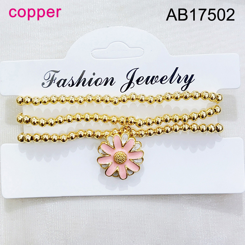 Home > Level B Fashion Jewelry New Trendy Women Jewelry Niche Design Layered Jewelry Round Beads Flower Golden Elastic Bracelet;Material:copper (cobre)