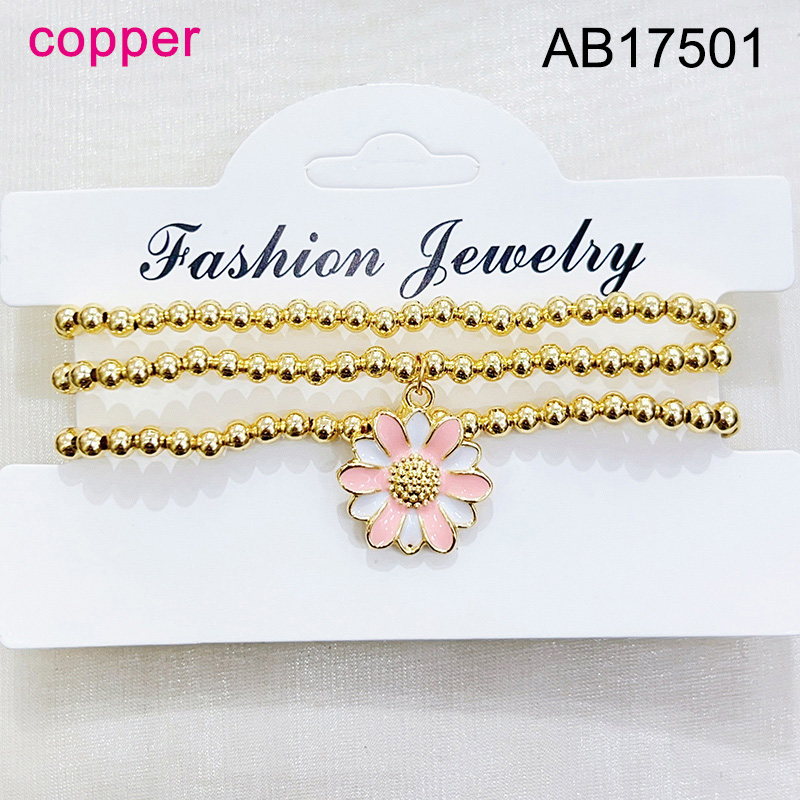 Home > Level B Fashion Jewelry New Trendy Women Jewelry Niche Design Layered Jewelry Round Beads Flower Golden Elastic Bracelet;Material:copper (cobre)