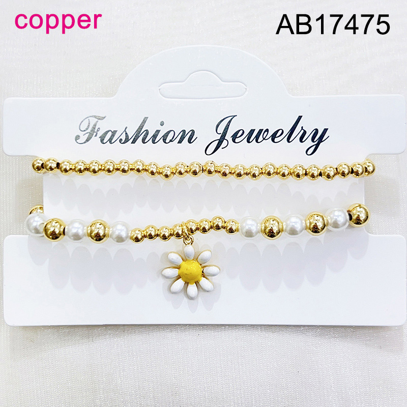 Home > Level B Fashion Jewelry New Trendy Women Jewelry Niche Design Layered Jewelry Pearl Style/Plastic Beads Round Beads Flower Golden Elastic Bracelet;Material:copper (cobre)