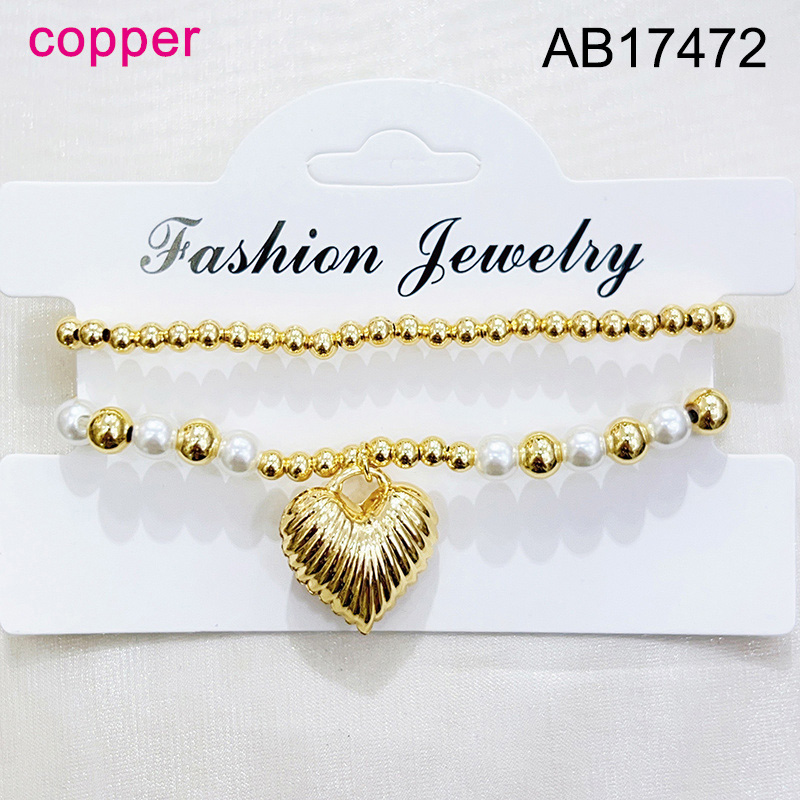 Level B Fashion Jewelry New Trendy Women Jewelry Niche Design Layered Jewelry Pearl Style/Plastic Beads Round Beads Heart Golden Mother's Day Elastic Bracelet;Material:copper (cobre)