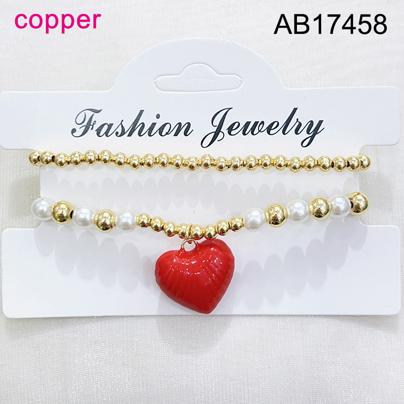 Home > Level B Fashion Jewelry New Trendy Women Jewelry Niche Design Layered Jewelry Pearl Style/Plastic Beads Round Beads Heart Golden Mother's Day Elastic Bracelet;Material:copper (cobre)