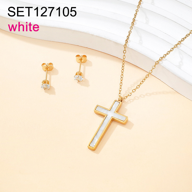 Level B Stainless Steel New Trendy Women Jewelry Cross Golden SET