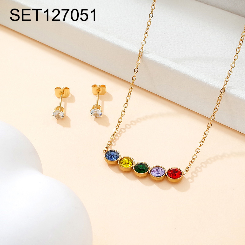 Level B Stainless Steel New Trendy Women Jewelry Round Stone Golden SET