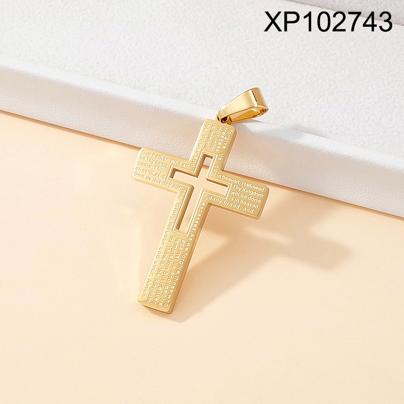 Home > Level B Stainless Steel New Trendy Man Jewelry Cross Scriptures Golden Pendant