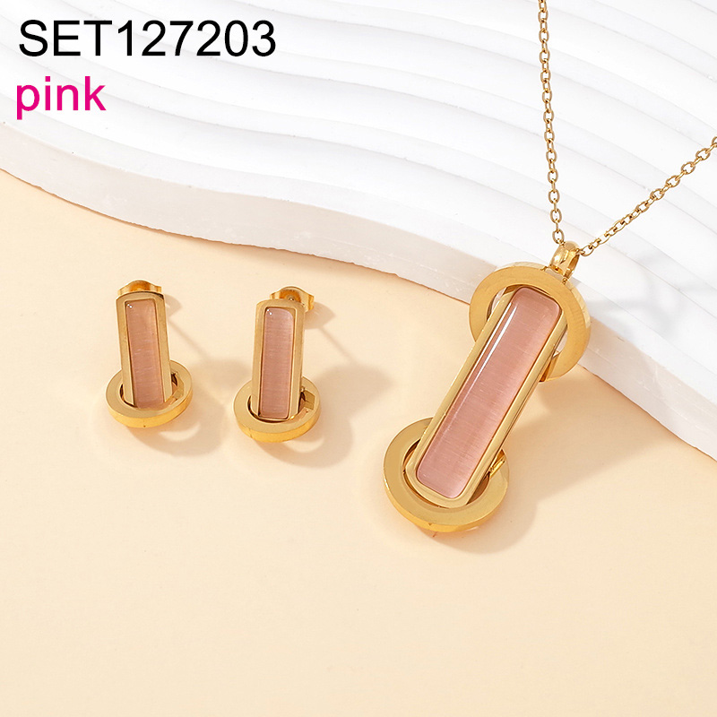 Home > Level B Stainless Steel New Trendy Women Jewelry Round Rectangle Golden SET