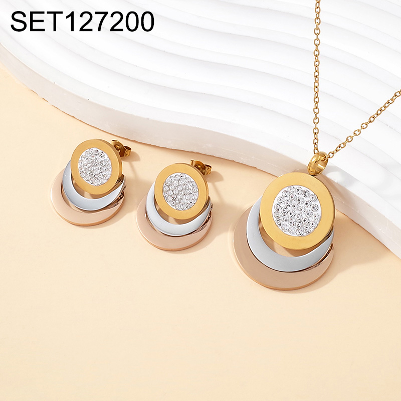 Level B Stainless Steel New Trendy Women Jewelry Round Three Tone SET