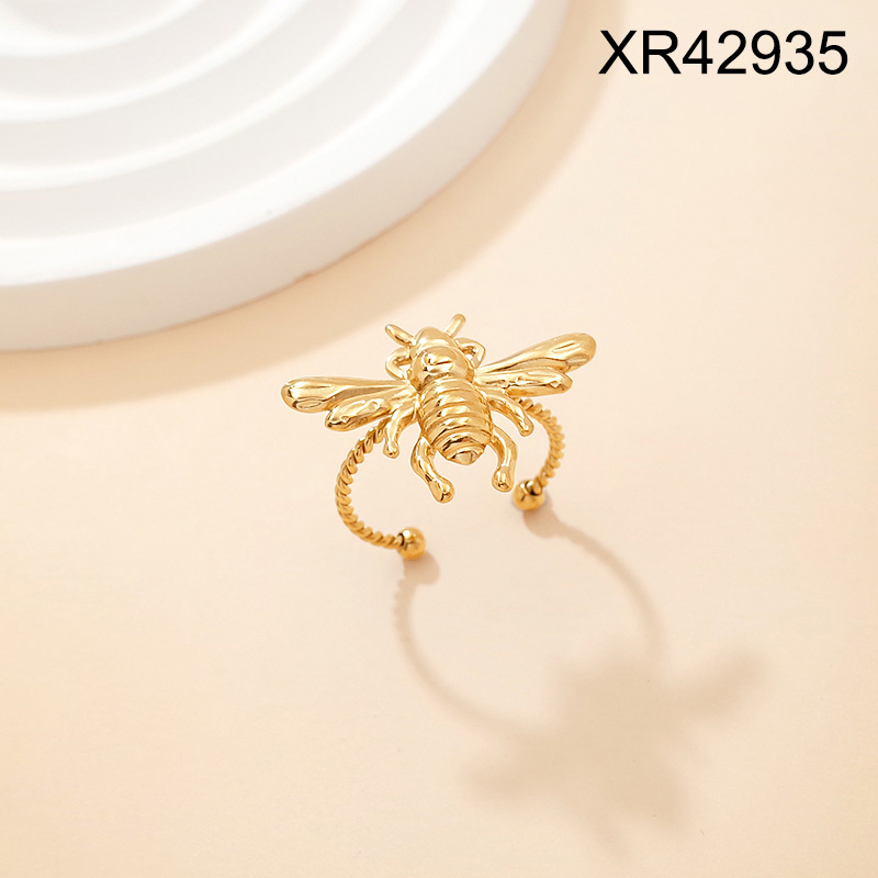 Level B Stainless Steel New Trendy Women Jewelry Animal Bee Golden Open Rings;Ring size can be adjusted freely