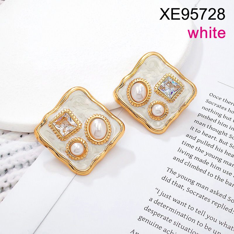 Home > Level B Stainless Steel New Trendy Women Jewelry Drip Oil/Enamel White Square Golden Earrings
