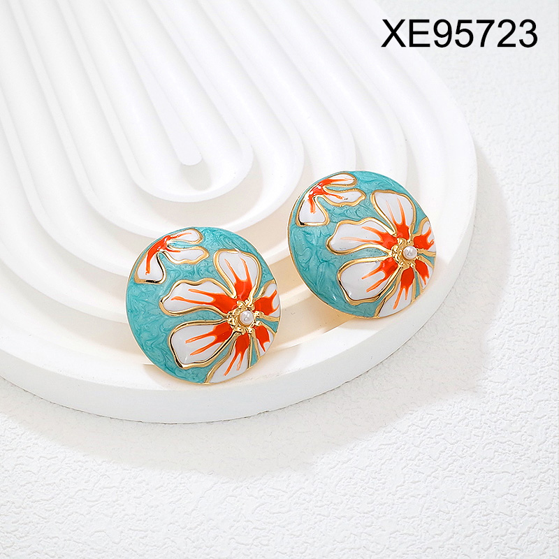 Home > Level B Stainless Steel New Trendy Women Jewelry Drip Oil/Enamel Flower Golden Earrings